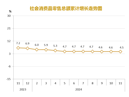 - 2024年1-11月社会消费品零售总额增长4.5%