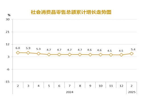 - 2025年1-2月社会消费品零售总额增长5.4%
